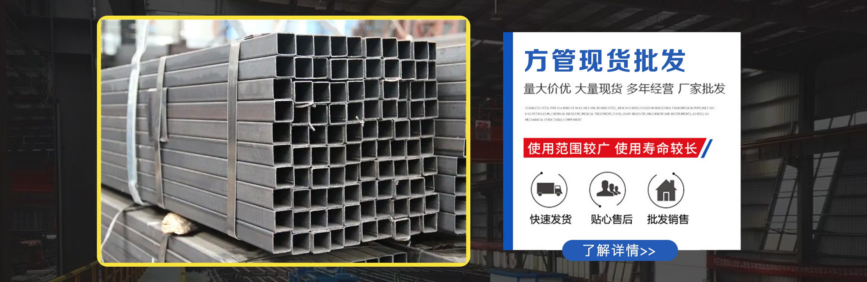 天津鍍鋅方管廠位于天津市靜海大邱莊工業(yè)區(qū),交通便利,地理位置優(yōu)越。我廠占地面積近9000平方米,注冊資金1000萬元,主要從事鍍鋅方管,鍍鋅方矩管,熱鍍鋅方管,鍍鋅方管廠家等產(chǎn)品的生產(chǎn)及銷售,現(xiàn)生產(chǎn)設(shè)備已擴(kuò)大到六條,年生產(chǎn)量十萬噸左右占地面積近兩萬平米。銷售網(wǎng)絡(luò)遍及全國,受到廣大用戶認(rèn)可。公司恪守以誠信為本,立業(yè)為眾的經(jīng)營理念,以可靠的質(zhì)量、合理的價格、優(yōu)質(zhì)的服務(wù)、卓絕的信譽、期待您的關(guān)注和支持。 公司庫存量大,材質(zhì)規(guī)格齊全,沒有規(guī)格及特殊規(guī)格材質(zhì)方管可及時定貨生產(chǎn),我公司經(jīng)營方式靈活,批零兼營、一支起售,并可為客戶辦理鐵路、公路運輸,7*24小時為您服務(wù),歡迎新老客戶來電垂詢。 公司一直堅持“以質(zhì)量求生存,以產(chǎn)品求發(fā)展,以信譽保合作,以服務(wù)贏客戶”的經(jīng)營方針,客戶遍及大江南北,獲得了良好的聲譽與回報,在以后的發(fā)展歷程中,我們愿與廣大客戶攜手并進(jìn),共創(chuàng)輝煌。 熱忱歡迎新老客戶蒞臨指導(dǎo)、洽談業(yè)務(wù)!...